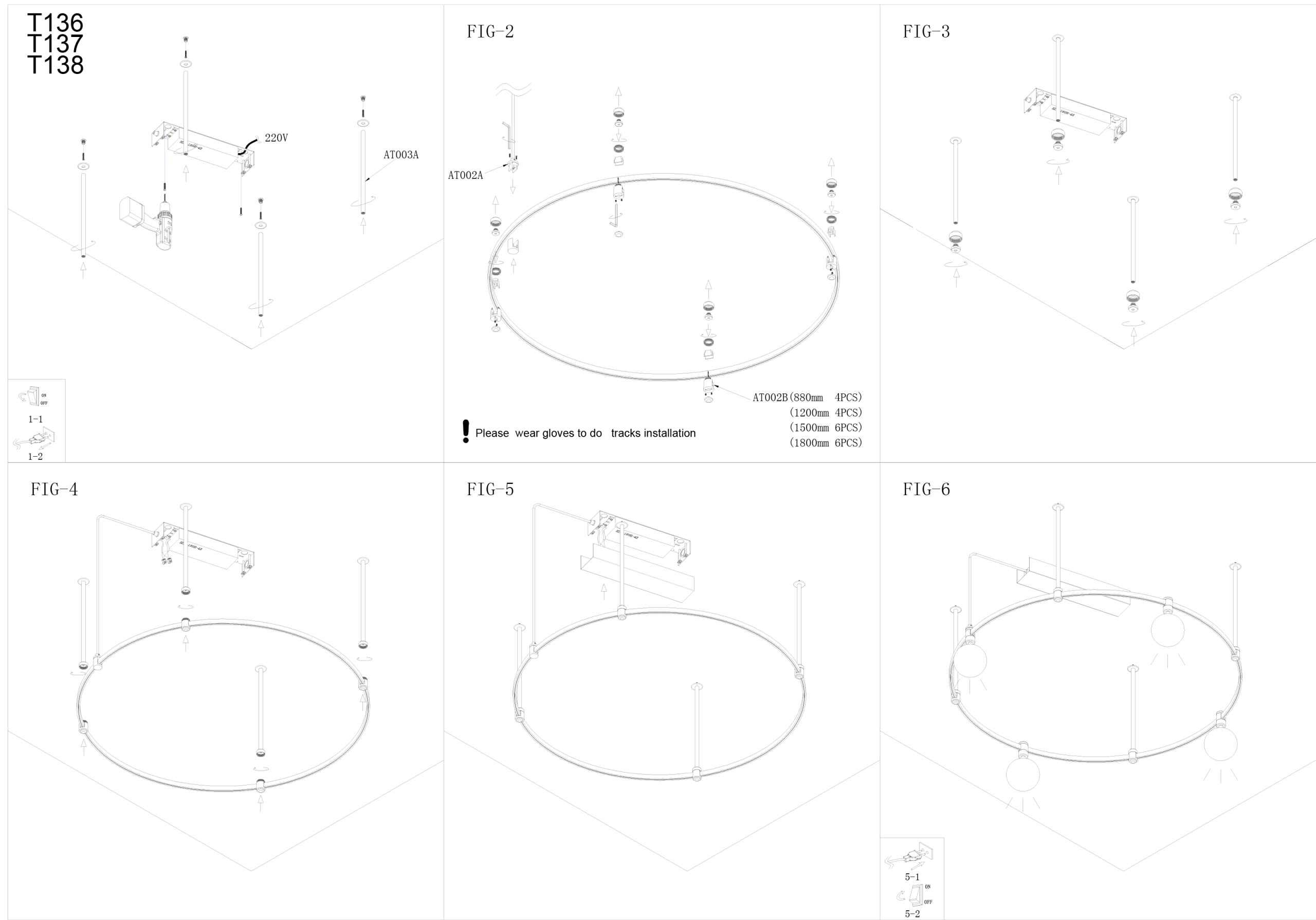 ریل های دایره ای نیز از جنس برنج و در سه سایز طراحی شده. ریل ها بوسیله پایه و سیم بوکسل به صورت سقفی و آویز، با ارتفاع دلخواه اجرا می شوند.