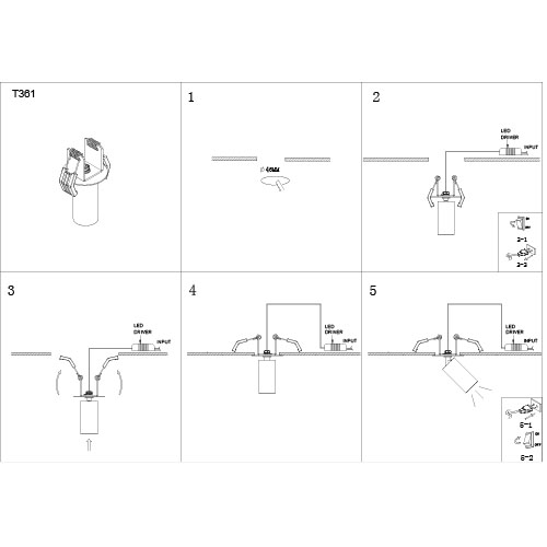 سقفی توکار متحرک 7 وات نور 3000K لنز °36 کد T361